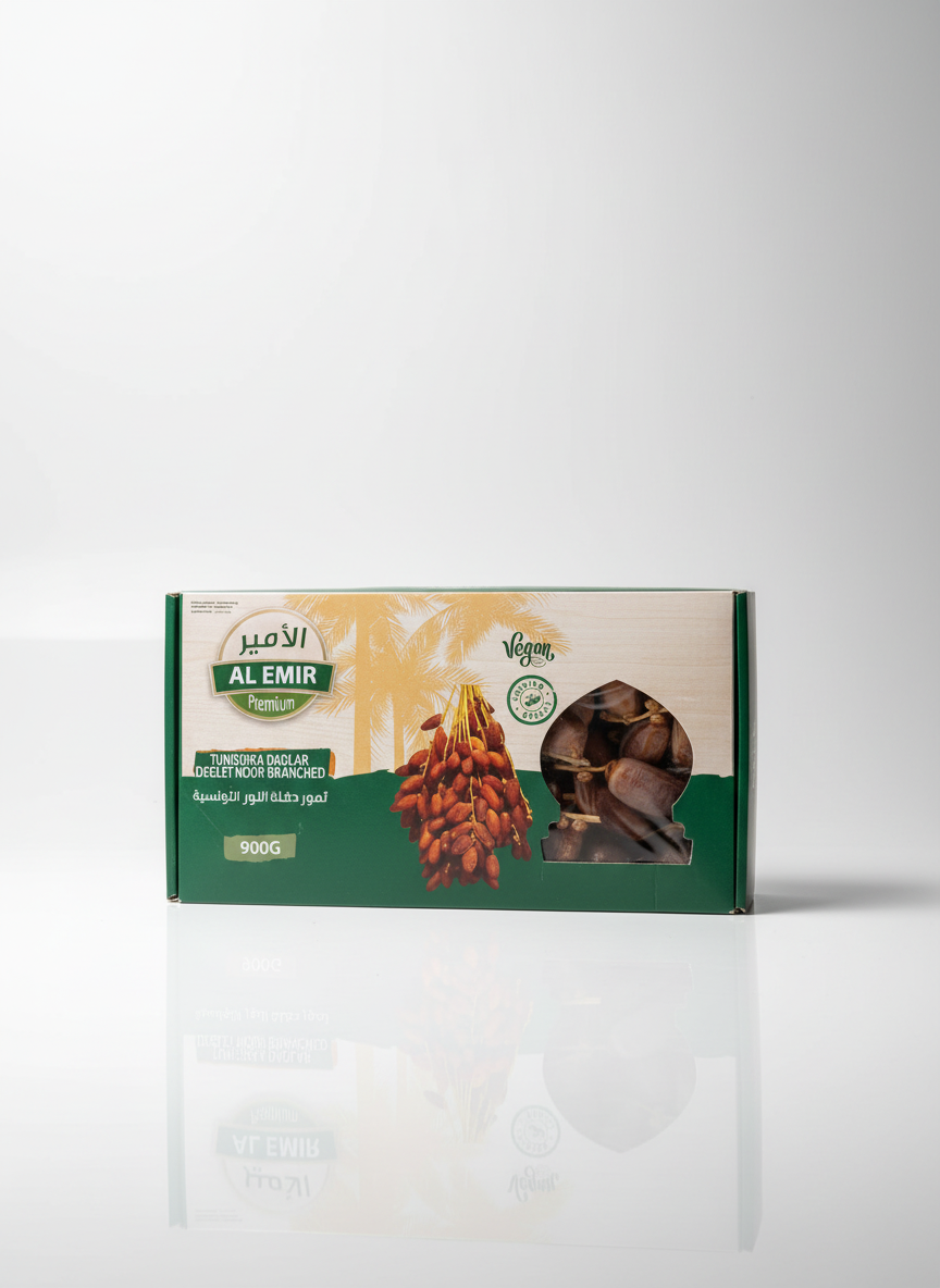 Tunisiska dadlar är kända för sin mjuka konsistens, gyllene färg och naturliga karamellton. De är noggrant utvalda för att ge en balanserad sötma och en len textur som gör dem lika goda att äta som de är, som att använda i bakning och matlagning.