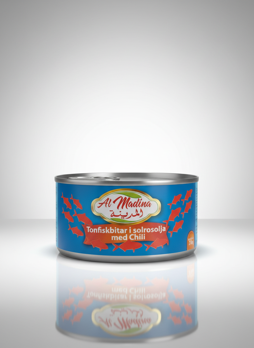 Al Madina Tonfisk i olja med chili är en smakrik och kryddstark tonfisk som kombinerar den klassiska tonfisksmaken med en het och aromatisk chiliton. Tonfisken är paketerad i olja vilket ger en fyllig, saftig och smakrik konsistens, perfekt när du vill ta dina rätter till nästa nivå.