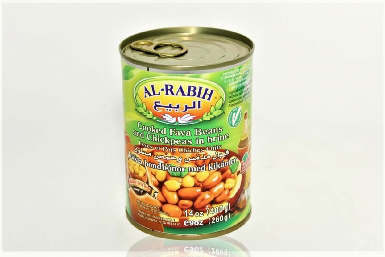 ALR Favabönor & Kikärter 425 g är en färdig, välsmakande blandning av kokta favabönor och kikärtor – ofta kryddad enligt mellanösternrecept med vitlök, citron, spiskummin och olja. Perfekt som frukost eller del av en mezetallrik, och ett mättande vegetariskt alternativ rikt på växtprotein.
