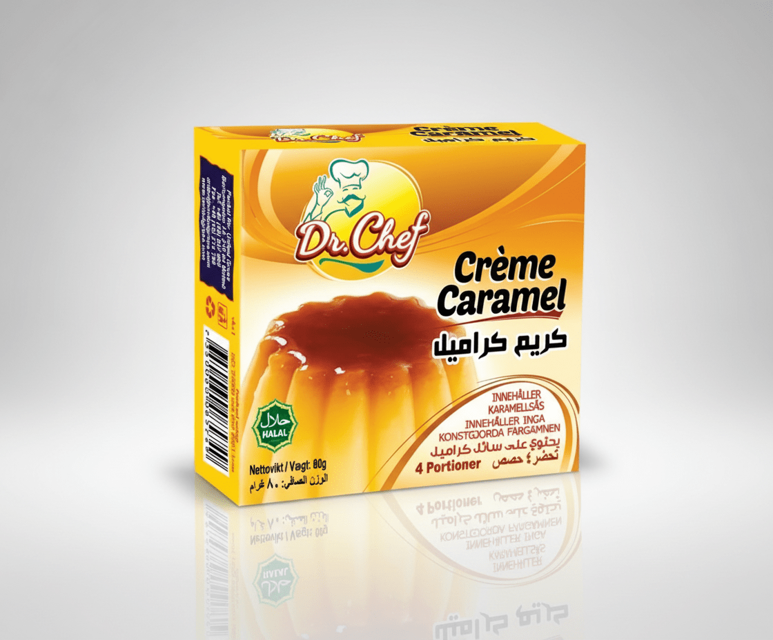 Dr Chef Crème Caramel är en tidlös dessertfavorit som bjuder på en mjuk och krämig upplevelse med en elegant sötma. Den passar utmärkt när du vill avsluta en måltid på ett enkelt men uppskattat sätt.