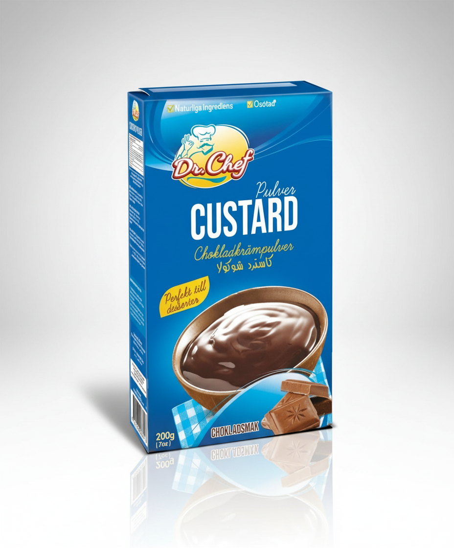 Dr Chef Custard Choklad 200 g är ett smidigt val när du vill skapa lena och chokladiga desserter. Den passar utmärkt som efterrätt, till bakverk eller som fyllning och topping i olika söta rätter.