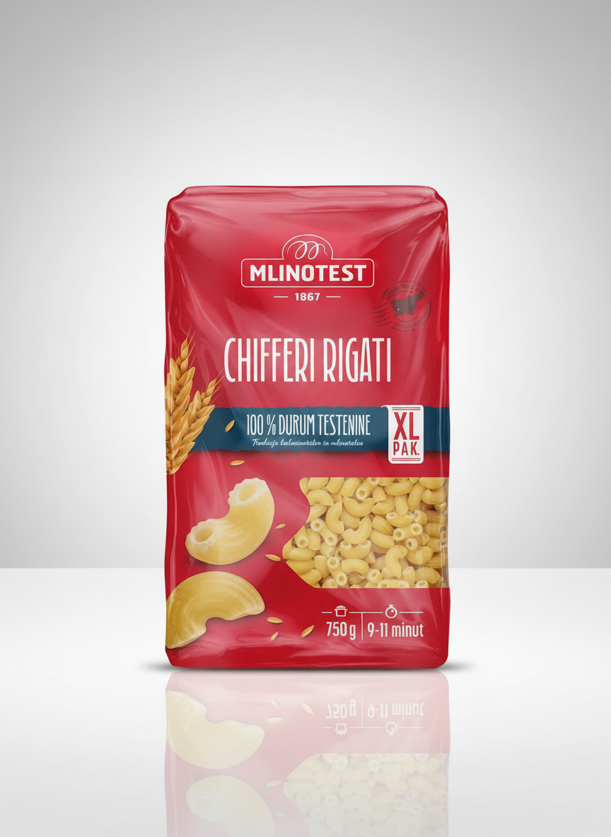 MLINOTEST Durum Chifferi Rigati 750 g är ett mångsidigt pastaval som fungerar utmärkt i många olika rätter. Den formade pastan fångar upp sås på ett bra sätt och passar lika bra till krämiga rätter som till ugnsbakad pasta eller sallader.